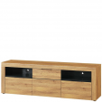 KAMA 25 SZYNAKA Тумба ТВ однодверная модульной системы Кама ШИНАКА с двумя выдвижными ящиками и двумя открытыми нишами с отверстиями для проводов в задней стенке каждой. За дверью установлена одна полка. Тумба оснащена системой тихого закрытия дверей и ящиков.