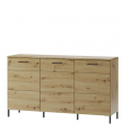 Комод исполнен в стиле лофт / индастриал, классической формы, характеризуется элегантным сочетанием цветов: корпус - дуб артизан, ручки и ножки - черный. Комод Lucas 36 может использоваться в гостиных, столовых, а также офисах.