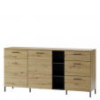 Практичный и вместительный предмет мебели. За каждой дверью имеется полка. Интересное дизайнерское и практичное решение - между секцией с дверями и выдвижными ящиками имеются три открытые ниши.  Комод исполнен в стиле лофт / индастриал, классической формы, характеризуется элегантным сочетанием цветов: корпус - дуб артизан, ручки и ножки - черный. Комод Lucas 48 может использоваться в гостиных, столовых, а также офисах.