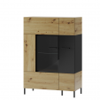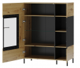 Низкая 2-дверная витрина в стиле лофт / индастриал, классической формы, характеризуется элегантным сочетанием цветов - дуб артизан + черный матовый. Кроме того, задняя стенка витрины также выполнена в матово-черном цвете, придающем мебели оригинальный характер. За дверью расположены 6 полок, 1 из них стеклянная. Визуальный эффект может быть дополнительно подчеркнут светодиодным освещением для стеклянных полок (опция). Витрина Lucas 15 может использоваться в гостиных, столовых, а также офисах.