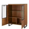 PRATTO 15 SZYNAKA Витрина двухдверная модульной системы Пратто ШИНАКА. За двумя дверями со вставками из прозрачного закаленного стекла в черной алюминиевой раме расположены две полки, в том числе одна стеклянная, и две ниши. Дополнительно витрина комплектуется подсветкой 3-L-BN-2-0000-01. Применяется система тихого закрытия дверей.