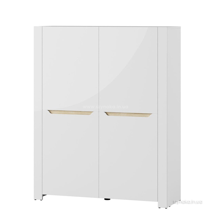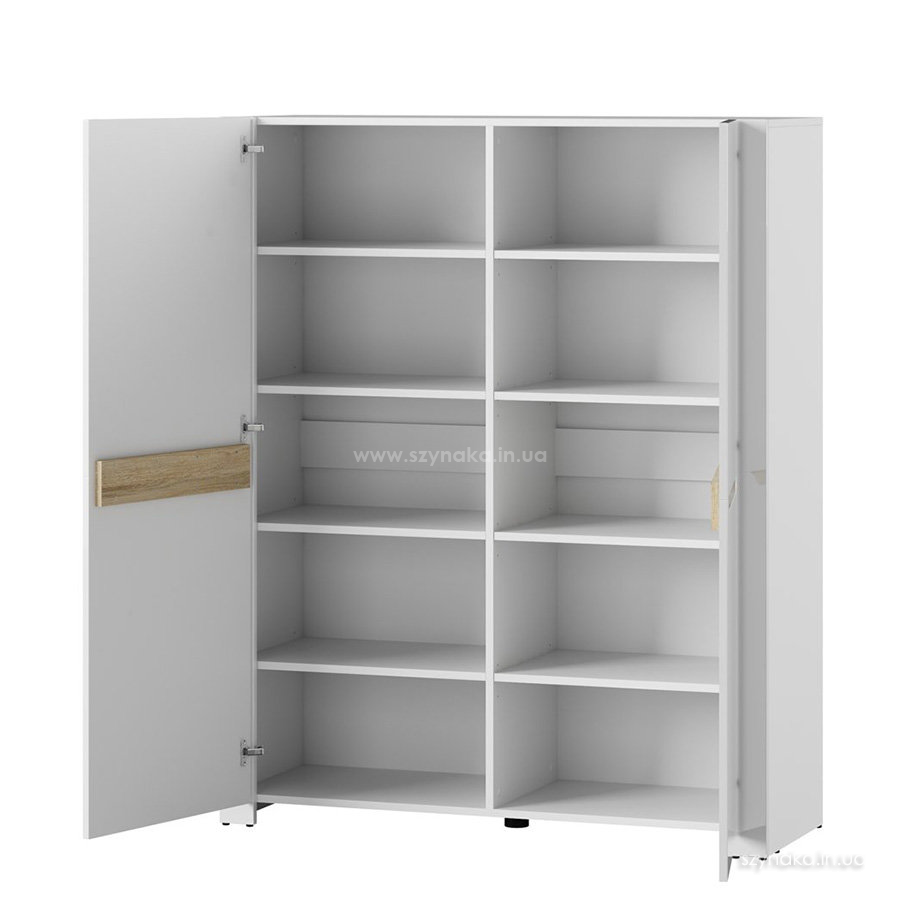 ICE 04 SZYNAKA Тумба двухдверная модульной системы Айс ШИНАКА. Для открывания используются оригинальные ручки-выемки. За каждой дверкой расположено по четыре полки. Применяется система тихого закрытия дверей.