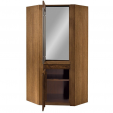 VELVET 16 SZYNAKA Витрина угловая двухдверная модульной системы Вельвет ШИНАКА с вращающимся баром за верхней дверцей. Поворотный механизм состоит из трех секций. Первая содержит полки для размещения бутылок, вторая с остекленной задней стенкой – полки с бортиками для стаканов и рюмок и рейлинг для бокалов, третья – зеркало. За нижней дверью расположена одна полка. Витрина декорирована внешней горизонтальной подсвеченной вставкой.