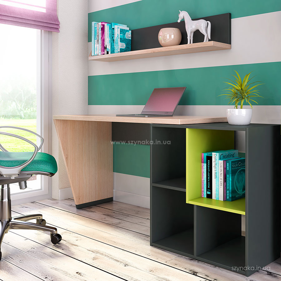 Стол письменный Szynaka Wow 07 - невероятно стильная и функциональная часть модульной системы, предназначенной для обстановки детской или молодежной комнаты. У письменного стола достаточно просторная рабочая поверхность прямоугольной формы, а также книжный поворотный стеллаж. Яркое цветовое решение мебели Wow позволит максимально интересно и стильно дополнить интерьер.