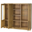 OSLO 48 SZYNAKA Буфет трехдверный модульной системы Осло ШИНАКА. Декорирован металлическими матовыми вставками. За боковыми дверями с прозрачным стеклом расположены три полки, в том числе две стеклянные. В среднем отделении – три деревянные полки. Дополнительно буфет комплектуется подсветкой 3-L-BN-4-0000-01. Применяется система тихого закрытия дверей.