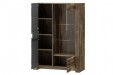 BELVEDER 15 SZYNAKA Витрина двухдверная модульной системы Бельведер ШИНАКА. Декорирована внешней горизонтальной подсвеченной вставкой, имитирующей кору дерева. За правой дверью, оснащенной вставкой из прозрачного стекла, расположены три полки, в том числе две стеклянные. В левом отделении установлены три деревянные полки. Витрина оборудована системой тихого закрытия дверей и дополнительно комплектуется подсветкой 2-L-BC-1-0000-01.