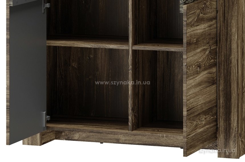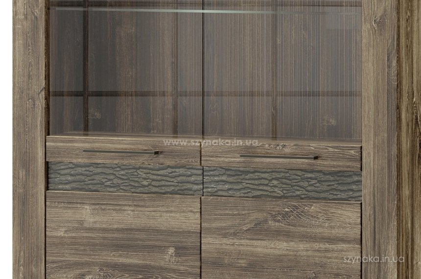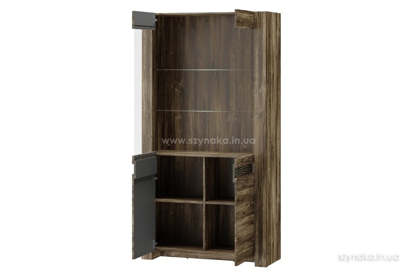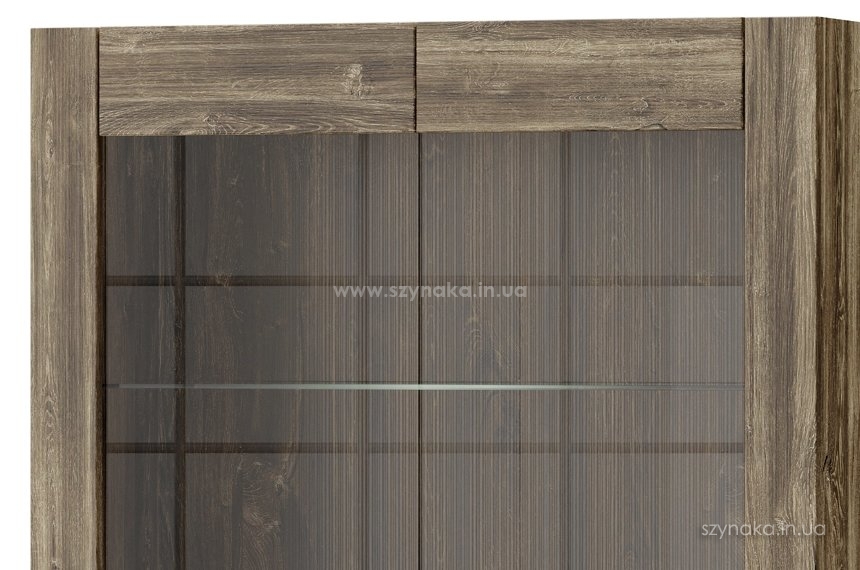 BELVEDER 12 SZYNAKA Витрина двухдверная модульной системы Бельведер ШИНАКА. Декорирована внешней горизонтальной подсвеченной вставкой, имитирующей кору дерева. Двери оснащены вставками из прозрачного стекла. Внутри расположено пять полок, в том числе две стеклянные. Витрина оборудована системой тихого закрытия дверей и дополнительно комплектуется подсветкой 2-L-BC-2-0000-01.