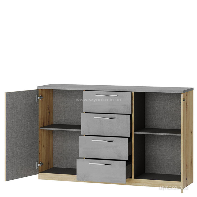 MEDIOLAN 04 SZYNAKA Комод двухдверный модульной системы Медиолан ШИНАКА с четырьмя выдвижными ящиками. За каждой дверцей расположено по одной полке.