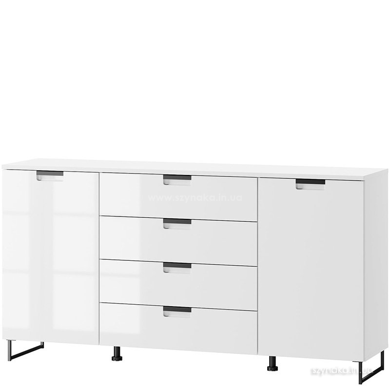 MEGAN 04 SZYNAKA Комод двухдверный модульной системы Меган ШИНАКА с четырьмя выдвижными ящиками. Внутри каждого отделения установлена одна деревянная полка.